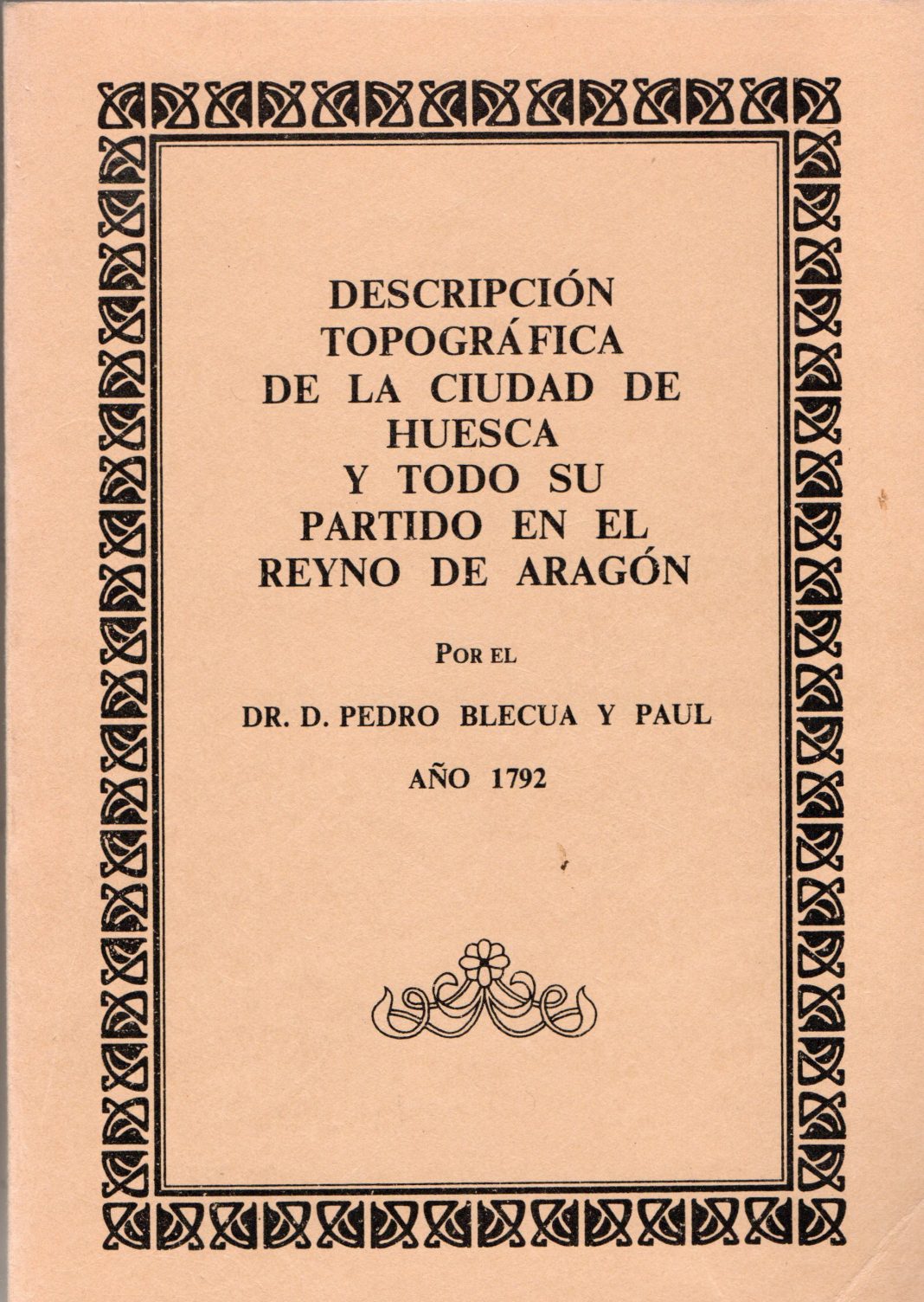 Descripción topográfica de la ciudad de Huesca y todo su partido en el Reino de Aragón Pedro Blecua y Paul, 1792 (edición 1988)